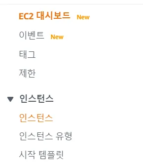 - 좌측 메뉴에서 인스턴스-인스턴스 클릭