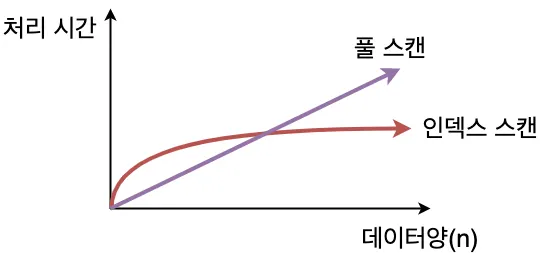 - 검색 속도 향상 : 인덱스를 사용하지 않을 때는 full scan을 하기 때문에 속도가 느리다.