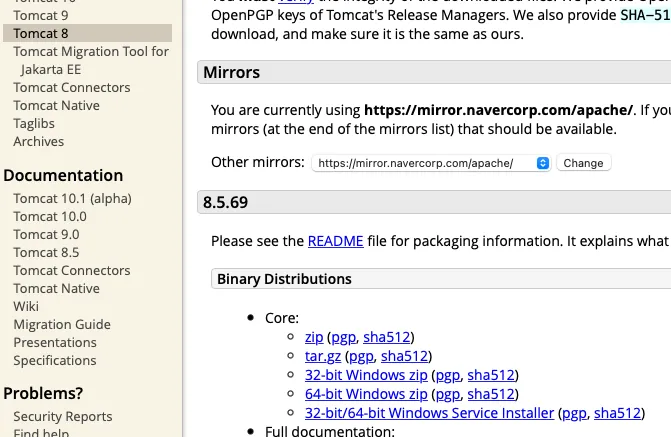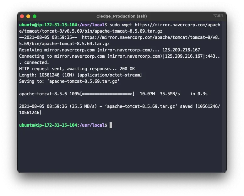 wget https://mirror.navercorp.com/apache/tomcat/tomcat-8/v8.5.69/bin/apache-tomcat-8.5.69.tar.gz