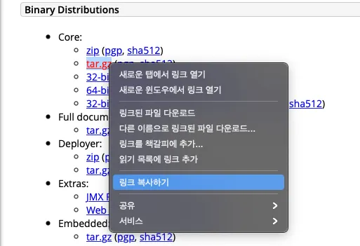 3. Core - tar.gz 링크 복사하기