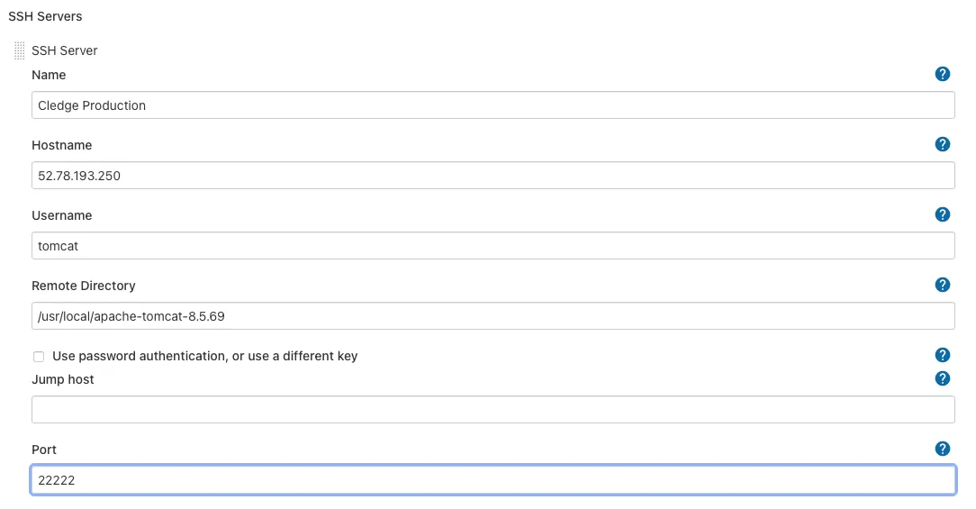 SSH 서버는 등록해놨던 톰캣 서버로 선택