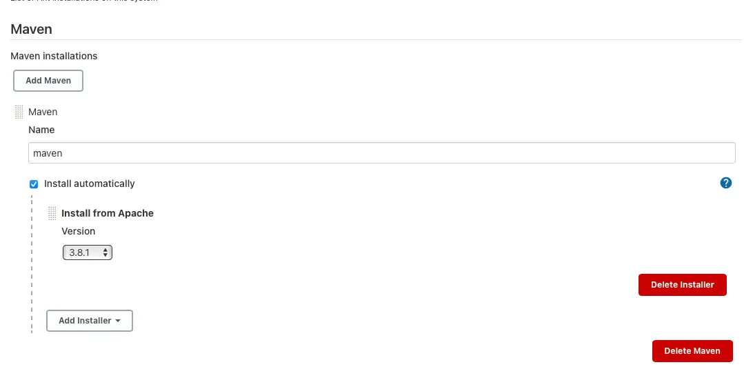 install automatically 체크 이후 Name 자유롭게 설정