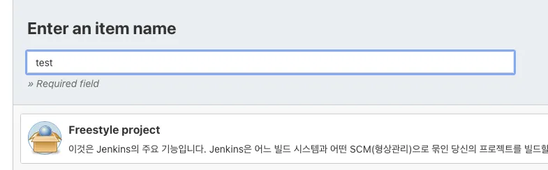 27. Jenkins - 새로운 item - 이름 작성 - Freestyle project 클릭 - 생성
