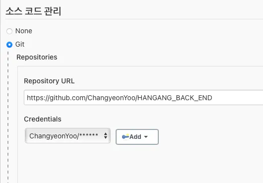 Repository URL 입력