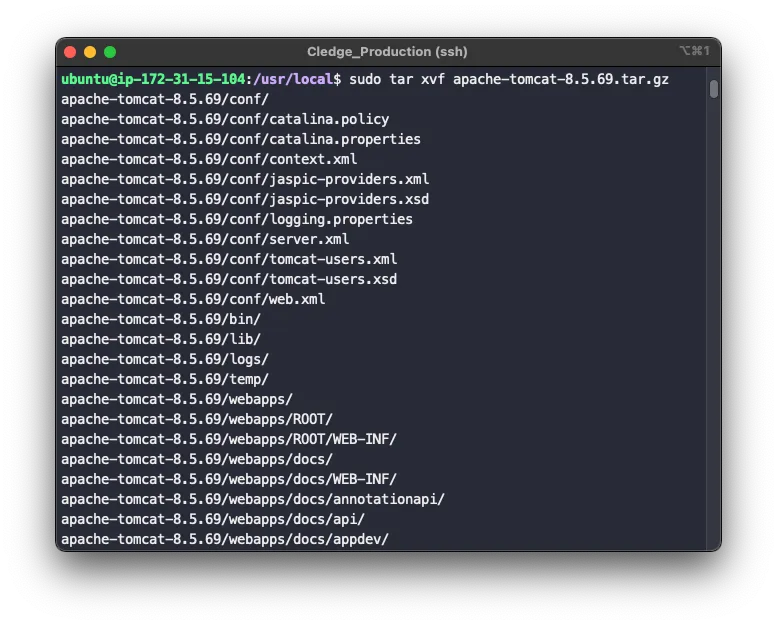 sudo tar xvf apache-tomcat-8.5.69.tar.gz