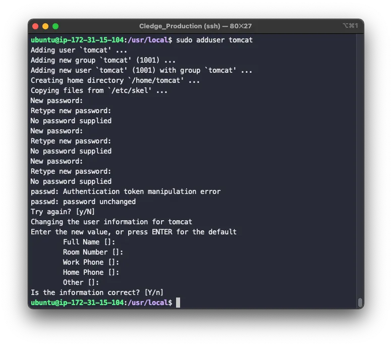 sudo adduser tomcat