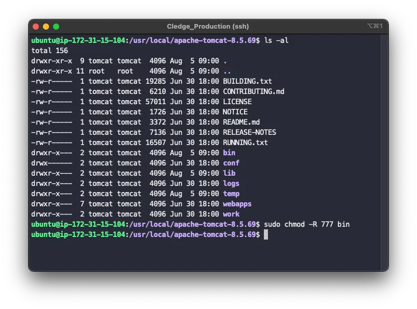sudo chown -R tomcat:tomcat apache-tomcat-8.5.69