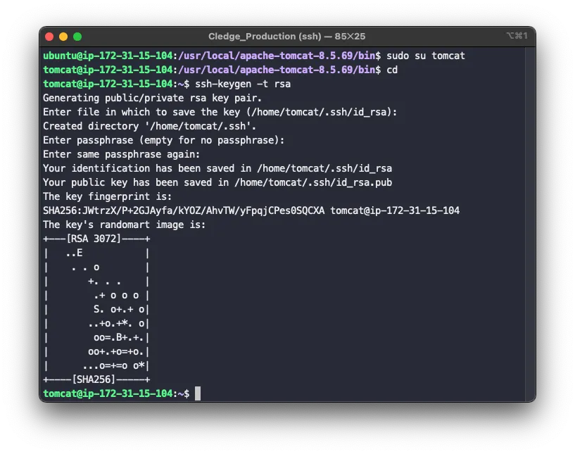 빌드서버에서 ssh-kegen으로 rsa 키를 생성할 때 private키의 시작부가 다르게 생성되는 경우가 있었다. ssh-keygen -t rsa 만 입력해서 키를 생성했었고 이는 tomcat에 authorized_keys에 등록해도 key pair가 일치하지 않았다.